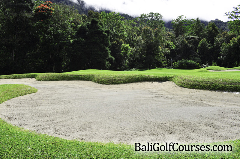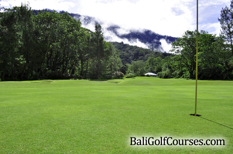 The Absolutely Green in the lush high heartland of Bali at an altitude of 1.142 meters above the sea level which surrounded by rolling mountain, crater lakes and ancient forest, the course design is meant to blend the fairways and create a dramatic backdrop for tea shots and approaches. The deep blue sky, the air fresh, clear and the temperature average between 14 - 20 Celsius degrees. It is rights comfortable golfing destination in Bali.